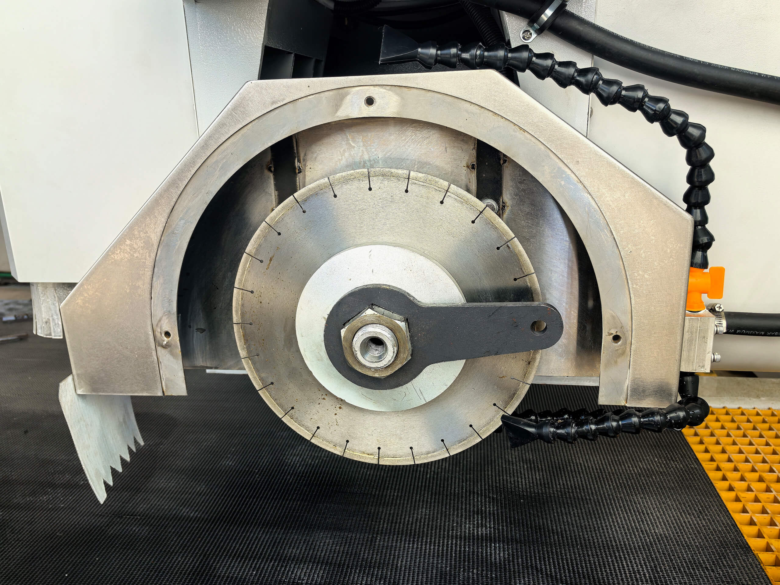 The 0~360° rotating head and 0~90° tilting capability allow intricate 3D shaping, making it suitable for decorative stone pieces, fireplace surrounds, and bespoke interior elements.